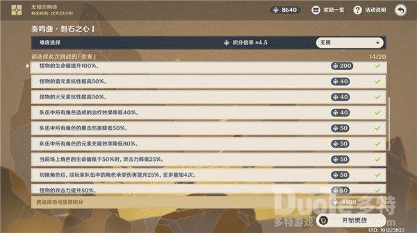 1.本次挑战可以多次进行,没有次数限制,旅行者可以根据自己的练度逐步增加难度.