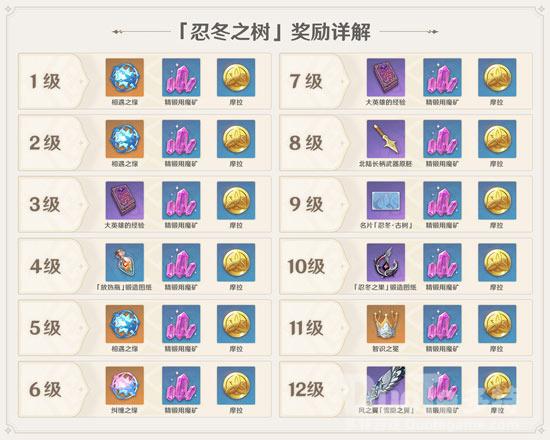 绯红玉髓(类似风/岩神瞳):是龙脊雪山特有的产物,目前共发现76个。旅行者供奉给雪山特有的忍冬之树后每级都有奖励,升到12级一共需要收集110个(每级10个,初始1级)。目前地图探索最高只能升到8级,之后8级树每周会开启两次绯红之愿任务(每次有5个小任务,全部每做完一个任务给1个绯红玉髓,任务每周一&周五刷新,一共10个)获得后面4级需要的绯红玉髓。雪山地区的收集是常驻内容,大家可以慢慢收集。