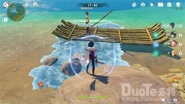 注意点:最后的交货npc在船上,直接走过去会因为踩入水中而失败。可以选择用凯亚E踏冰过去,此外温迪长按E原地起飞,钟离岩主爬造物飞过去,甚至踩着石头跳过去都是可行方法。