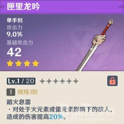 副属性为攻击百分比的单手剑、比较适合没有优秀五星单手剑的玩家,因为自带火雷元素单手剑角色的较少(除刻晴&班尼特),除开自身雷火元素的角色,触发条件需要切角色收益低。如果是七七、行秋又不吃怎么攻击力加成所以这个武器比较尴尬,只建议没有5星单手剑的刻晴玩家抽取。