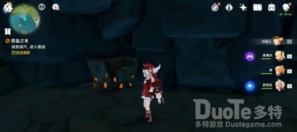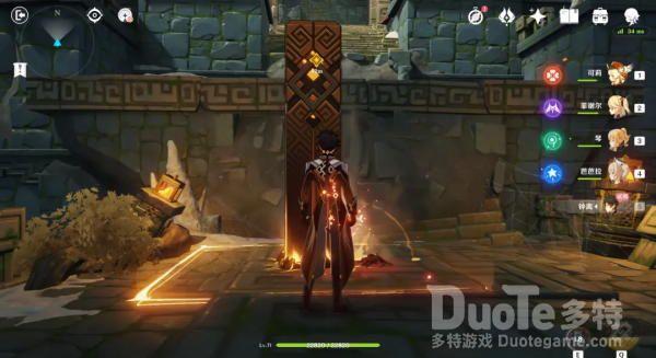 此副本属于钟离的传说任务,我们能够试玩钟离,钟离的e技能树立的柱子可以攀爬(跳跃+前进即可攀爬),许多解密也都需要钟离完成。