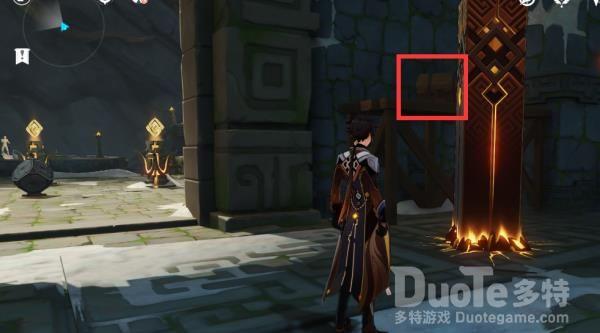 第三个宝箱在激活岩元素方碑后的房间,我们依然可以通过钟离释放柱子然后爬到顶端的方式获得。