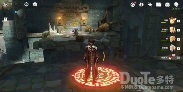 此副本属于钟离的传说任务,我们能够试玩钟离,钟离的e技能树立的柱子可以攀爬(跳跃+前进即可攀爬),许多解密也都需要钟离完成。