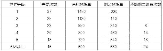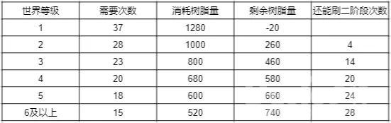 单次挑战需要花费40树脂,世界等级1单次挑战能获得20精粹,世界等级每升一级,每打1次能多换6点精粹,6级世界50精粹是单次获取上限。