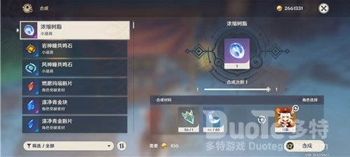 在蒙德和璃月的合成台里面玩家可以进行浓缩树脂的合成