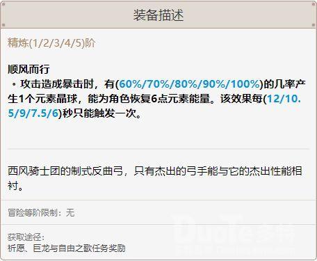 西风猎弓在角色在场暴击时提供元素能量,提高全队的元素充能效率。