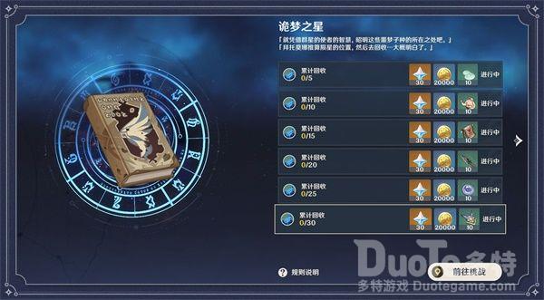 诡梦之星·玩法介绍11月18日「诡梦之星」开启后,完成任务「蔓延的危机」即可开启第二阶段「诡梦之星」。推算出的陨星位置将会出现在地图上,旅行者们需前往地图所标位置回收陨星。