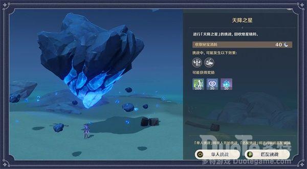 开启第三阶段挑战后,旅行者可以挑战「天降之星」,回收「熄星精粹」。挑战时可以选择单人挑战或者多人联机挑战。