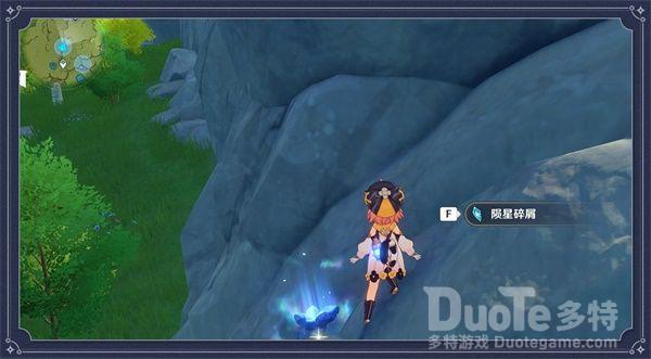 抵达受灾区域后,可以在左上角小地图上定位陨星碎屑的大致位置。角色接近碎屑时,神之眼会与之发生共鸣发出光芒,与碎屑距离越近光芒越强烈。