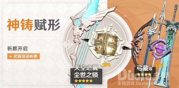 活动期间内,限定五星武器「法器·尘世之锁」、五星武器「弓·天空之翼」的祈愿获取概率将大幅提升!