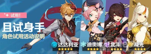 旅行者可以使用包含试用角色的固定阵容进入指定的关卡进行体验,挑战成功后即可获得对应奖励!