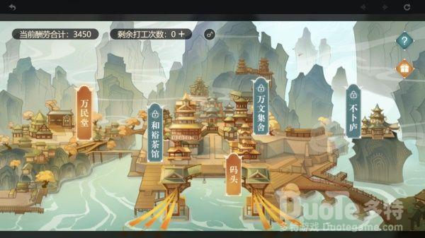 玩法解析1、选择打工地点,例如码头、万民堂等等。除码头之外,其余4个打工地点均需要合计酬劳达到一定数量方可解锁。