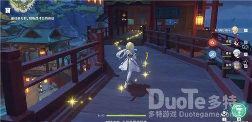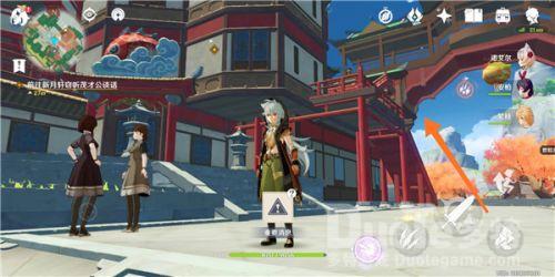 2、对话完继续跟着黄色印记走,前往新月轩,这条街尽头就是新月轩。从下图这个位置走,一直上四楼,即可探听消息。