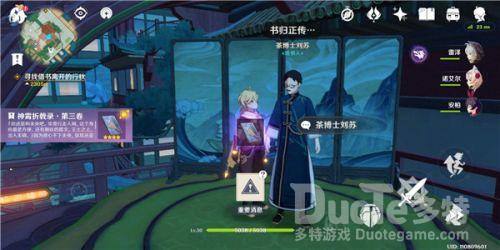 注:三楼有说书人茶博士,你跟这个说书人对话两次之后,就可以拿到神霄折戟录第三卷。(不要选“不听了“其余随便选)