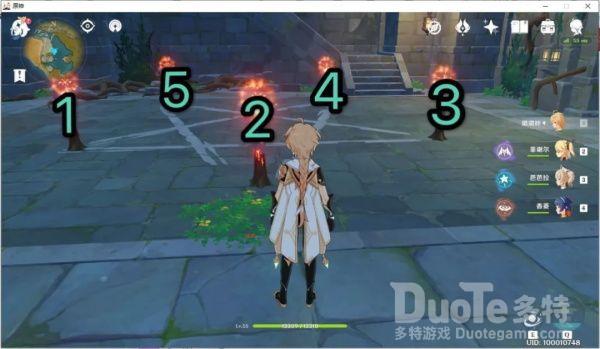 第一关的怪物分别是2个雷属性丘丘人弓箭手,2个石盾小型丘丘人,一个强化石。需要40秒内打倒