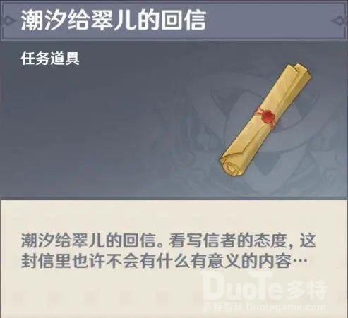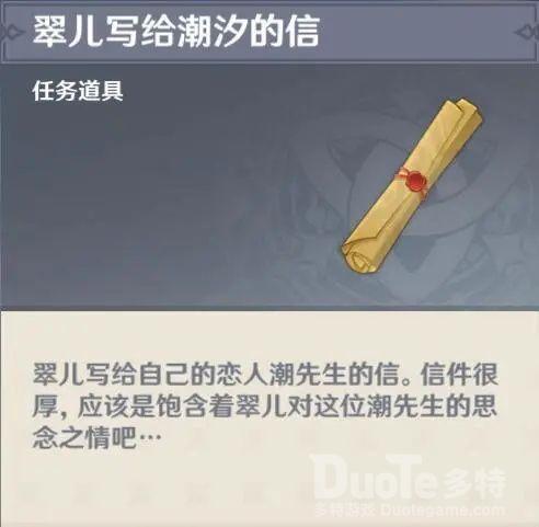 送信没有额外奖励,只是会解锁翠儿的相关剧情。我们此时返回璃月港就能找到潮汐和他身边的妹子。