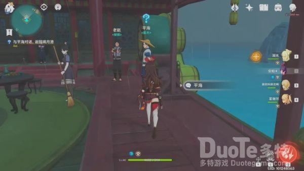 平海是船夫,完成任务后在璃月港和他对话就可以方便的在璃月港和珠钿舫之间传送(人肉传送点)。