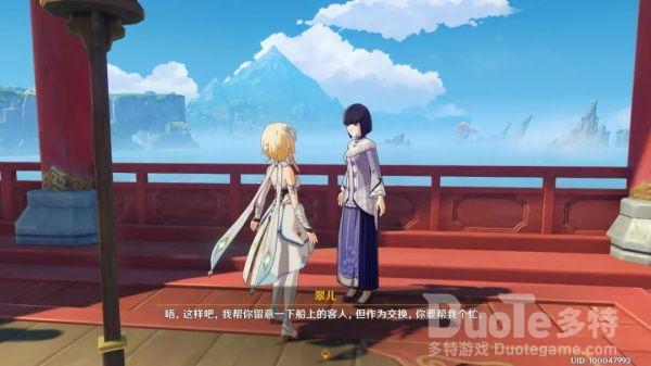 任务会让玩家与船上顾客对话来获取邀请函,不过大都是无用的对话干扰项,是游戏剧情的补充。如果大家不想浪费时间可以直接找到位于船头的秋歌。就是下图这位。