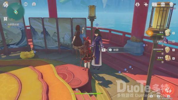 彩蛋:秋歌旁边有一个npc叫翠儿,在我们收到邀请函前和她对话,她会答应帮忙留意邀请函但是会拜托帮忙去璃月港给她的爱人潮汐送信。