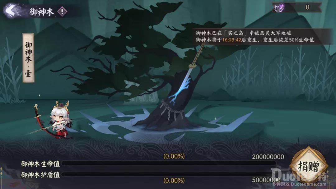 四棵御神木生命值与护盾值全服共享,捐献瘴气结晶优先恢复生命值生命满后恢复护盾值