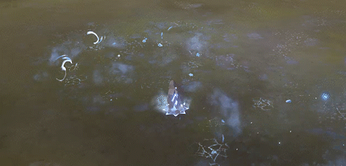 释放时自身发出一道水柱,随后随机释放7道冲天水柱。造成水元素伤害。