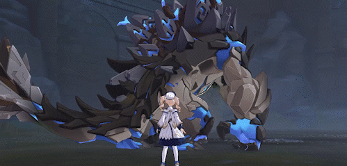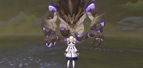 古岩龙蜥旋转上半身,抬起左爪,猛烈的拍击地面并撕扯收回。造成岩元素伤害。