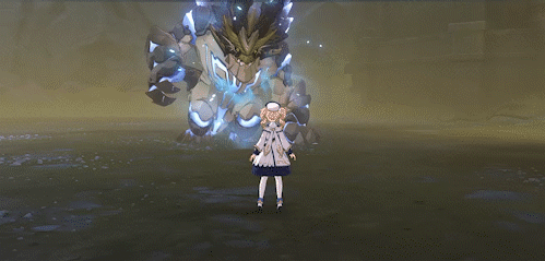 古岩龙蜥恼羞成怒,双手轮流撑地不断前进并挥出两次爪击,随后紧握双手砸向敌人。造成岩元素伤害。