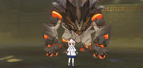 古岩龙蜥旋转上半身,到达极限后,挥出右爪攻击面前的敌人。造成岩元素伤害。