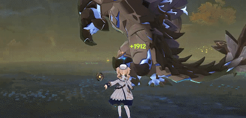 古岩龙蜥察觉身后有敌人,猛地回头观察,随后猛烈的甩动尾巴对周围的敌人进行攻击。造成岩元素伤害。