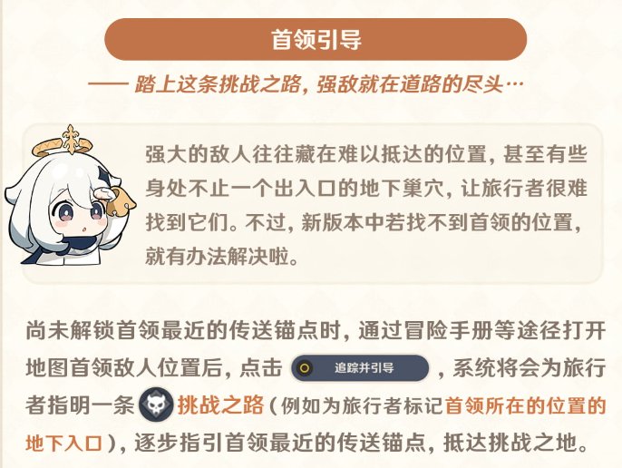 而最靠谱的还是首领指引,也就是BOSS追踪这一块的优化,很多玩家都会抱怨新BOSS的场地不好找,这个很正常,毕竟很多时候BOSS藏的地方都非常的阴间,这次系统会指示出挑战之路,标记首领所在的位置的地下入口。