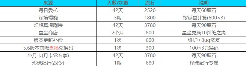 说明:此数据不包含签到、网页活动等随机性奖励,部分玩家因深境螺旋通关情况不同,实际获取量可能略有偏差。
