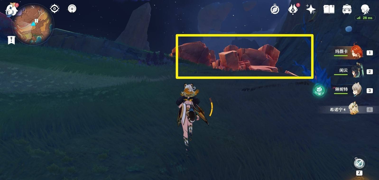 5、站在锚点处,往南方向(小地图下方)看,会发现一座高山中间有一个缝隙。