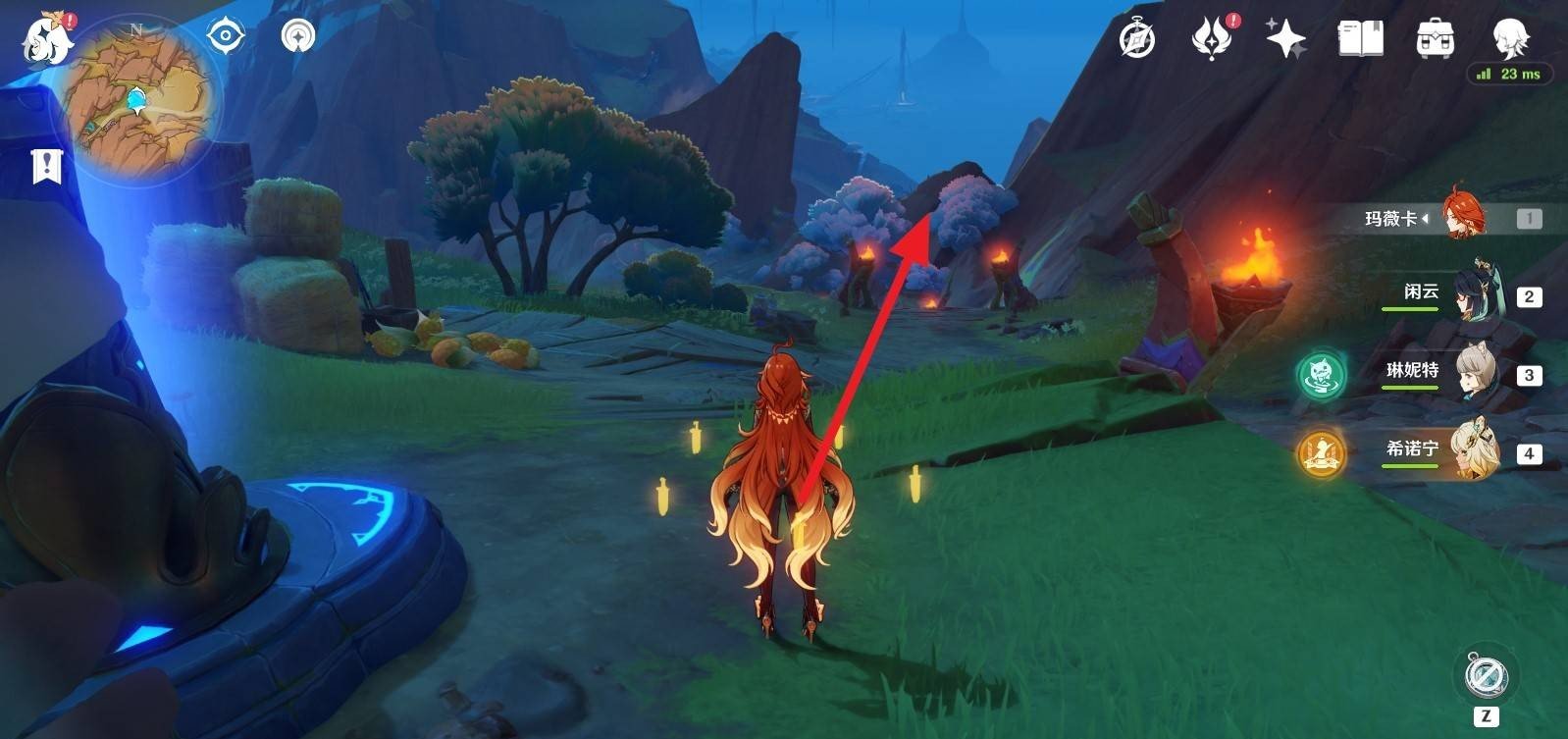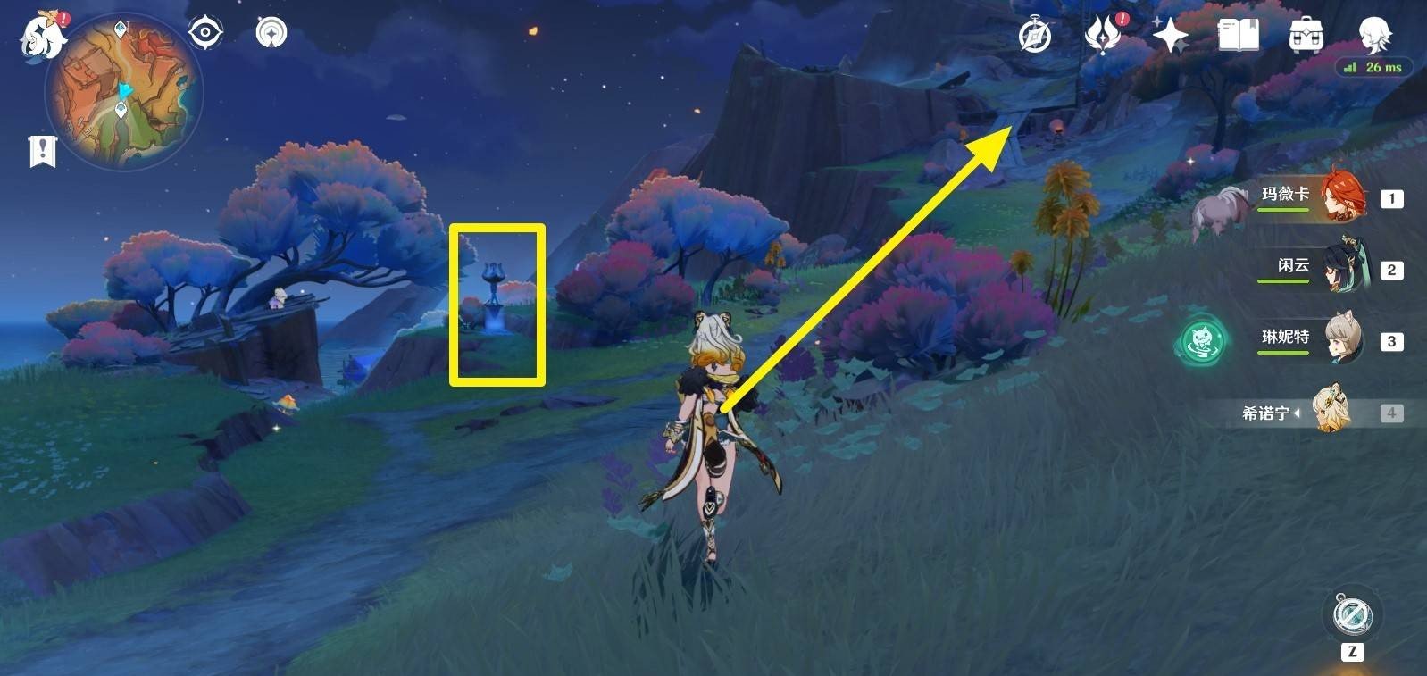 4、穿过石头障碍后,继续沿主路走,在右侧可以看到一个新的传送锚点,靠近后激活它。