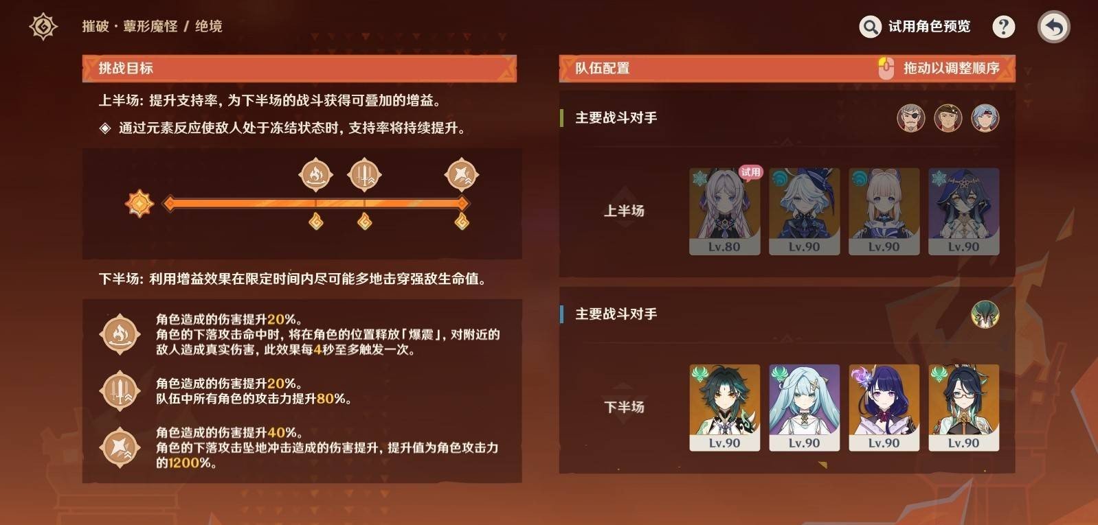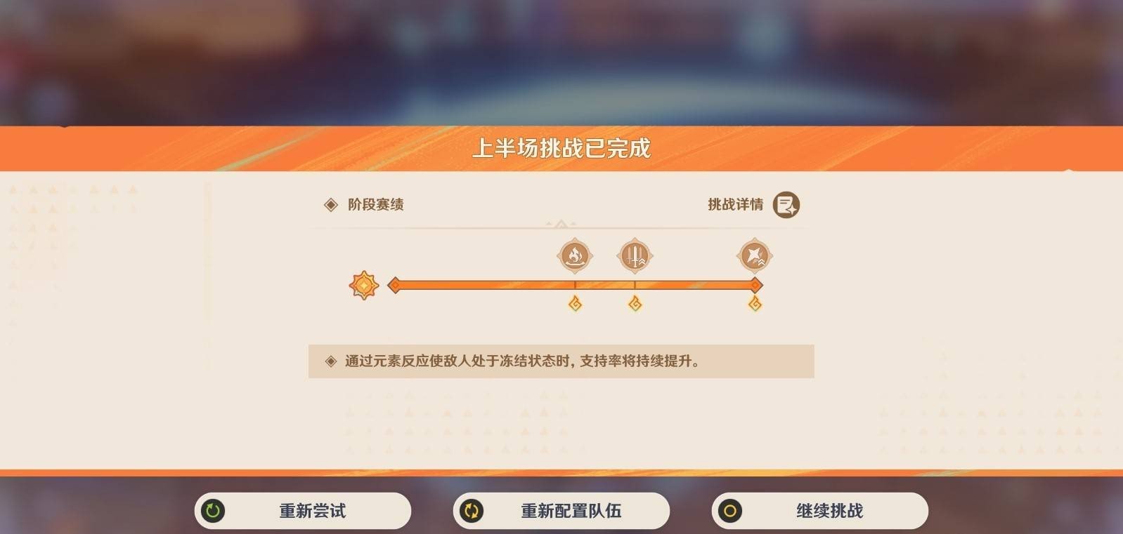 通过元素反应将敌人冻结时,支持率将逐渐提升,有助于下半场战斗。