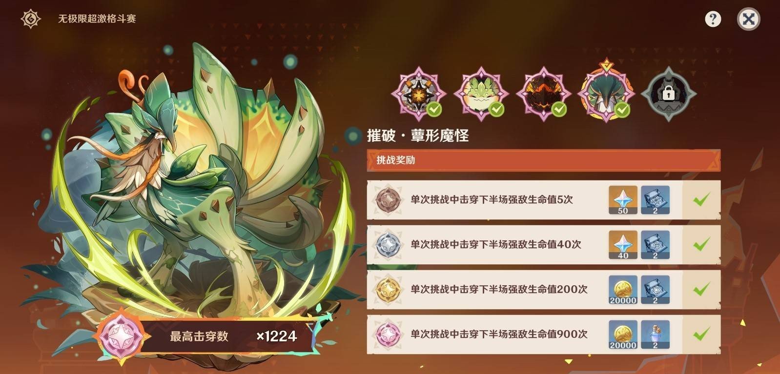 原神无极限超激格斗赛第四关满分配队推荐第四天 - 摧破·蕈形魔怪(翠翎恐蕈)
