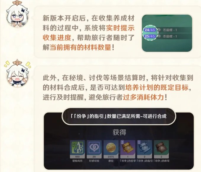 收集进度及时提醒,角色培养更加的轻松,收集养成材料的过程中,系统将实时提示收集进度,可以随时了解当前拥有的材料数量,培养计划的既定目标,避免旅行者过多消耗体力。