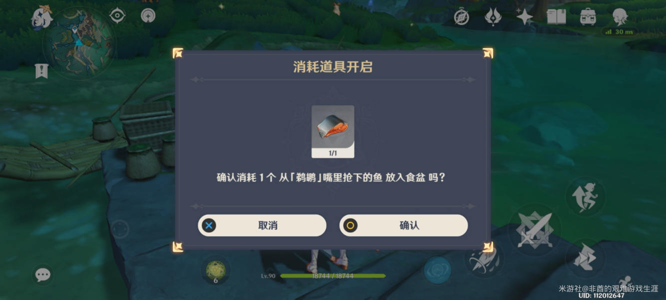 从地点一那里找到一只叫做“大盗”的鹈鹕,然后揍它,和派蒙一起揍它,从它嘴里抢到一块鱼