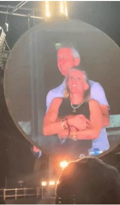 当天酷玩乐队也是进行了Kiss cam这一环节,然后就出现了下面这一幕:被摄像头捕捉到的男女男女双方上一秒还在紧紧相拥面带笑容地看着演出,下一秒就光速撒开有多远就躲多远,俨然一副不想被拍到的样子。