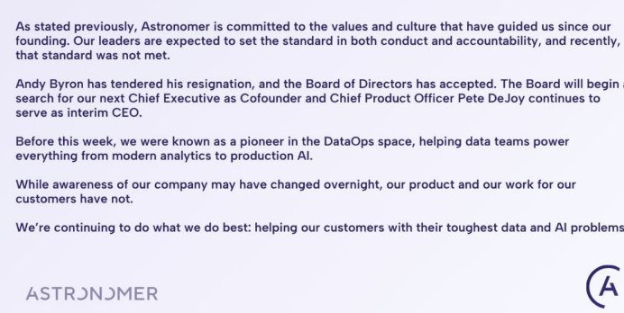 男方名叫安迪·拜伦,是美国大数据公司Astronomer的CEO,女方则是该公司的HR总监,二人各自均处在已婚有孩子的阶段。