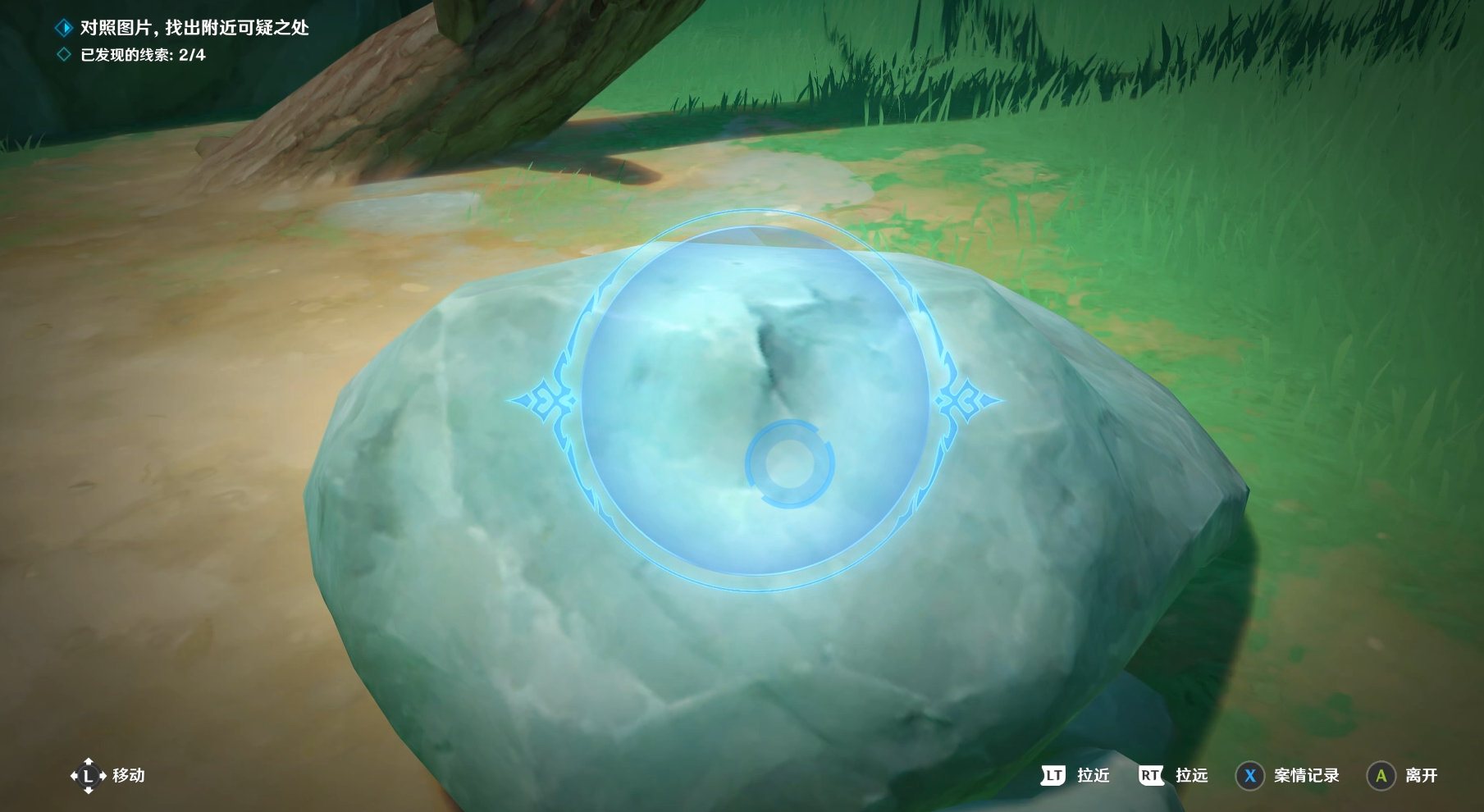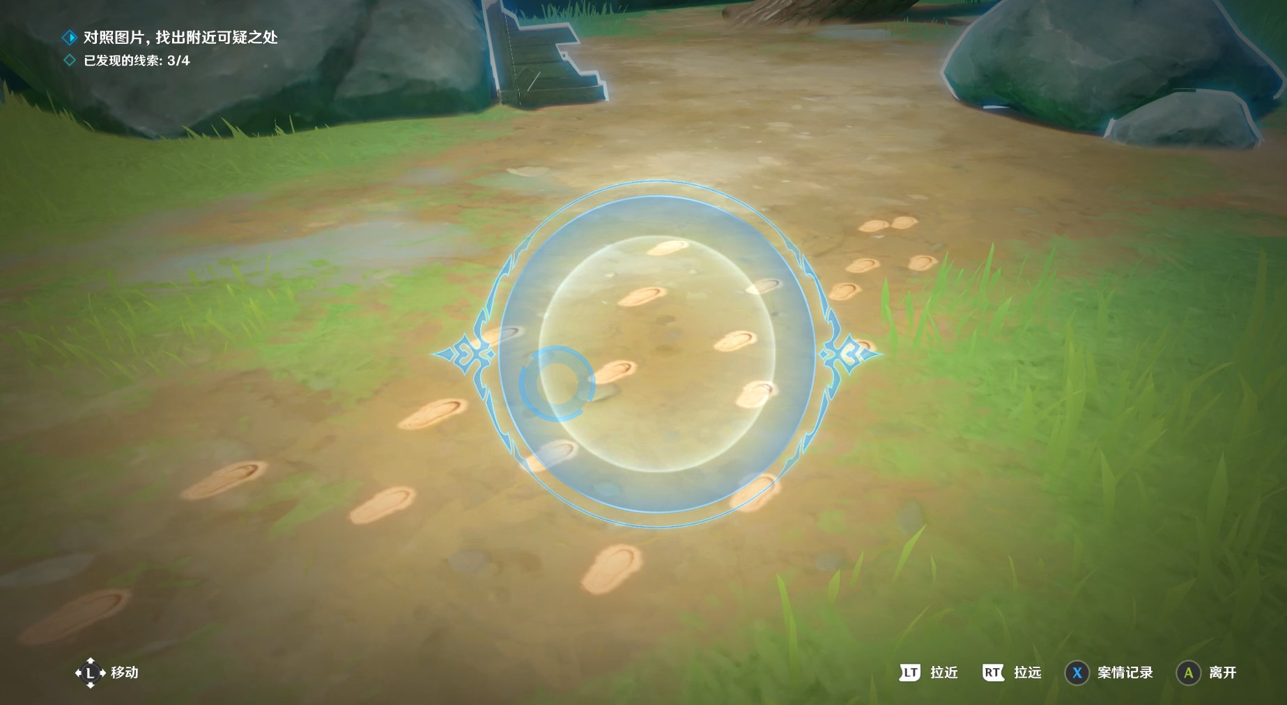 第二关:树上的灯、地面上的脚印、脚印附近的石头、以及木箱的碎片
