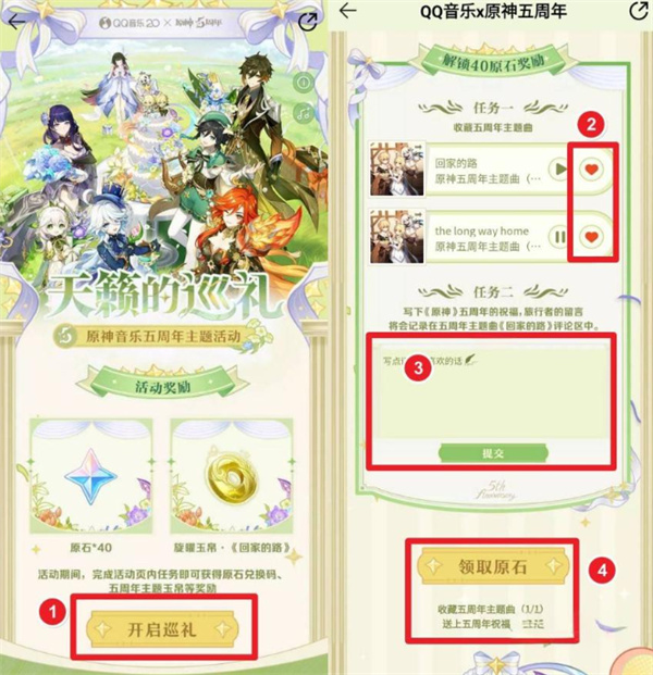 五周年庆典已经到来,本次原神开启了「天籁的巡礼」音乐主题活动,这次活动有很多不同的奖励和主题赠送,那么这次的奖励该怎么去进行领取呢,下面就让我们来看看原神天籁的巡礼音乐五周年活动原石领取攻略。