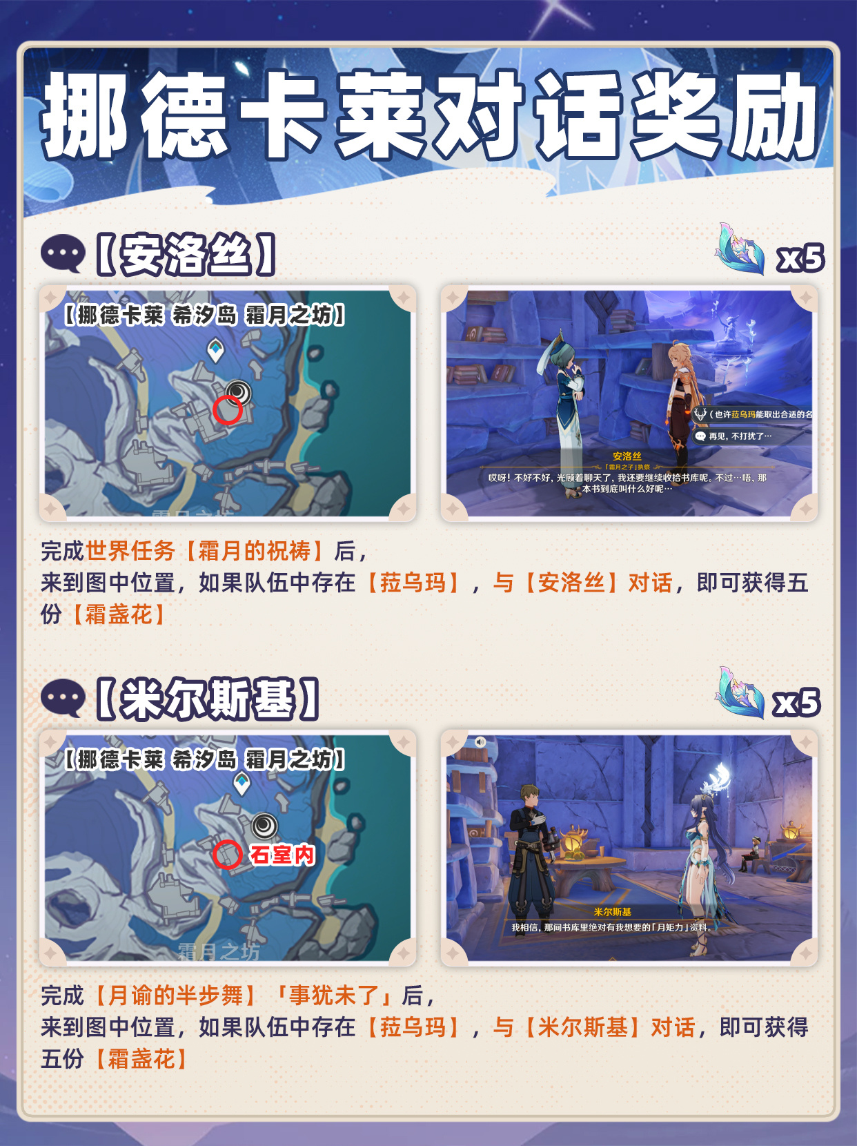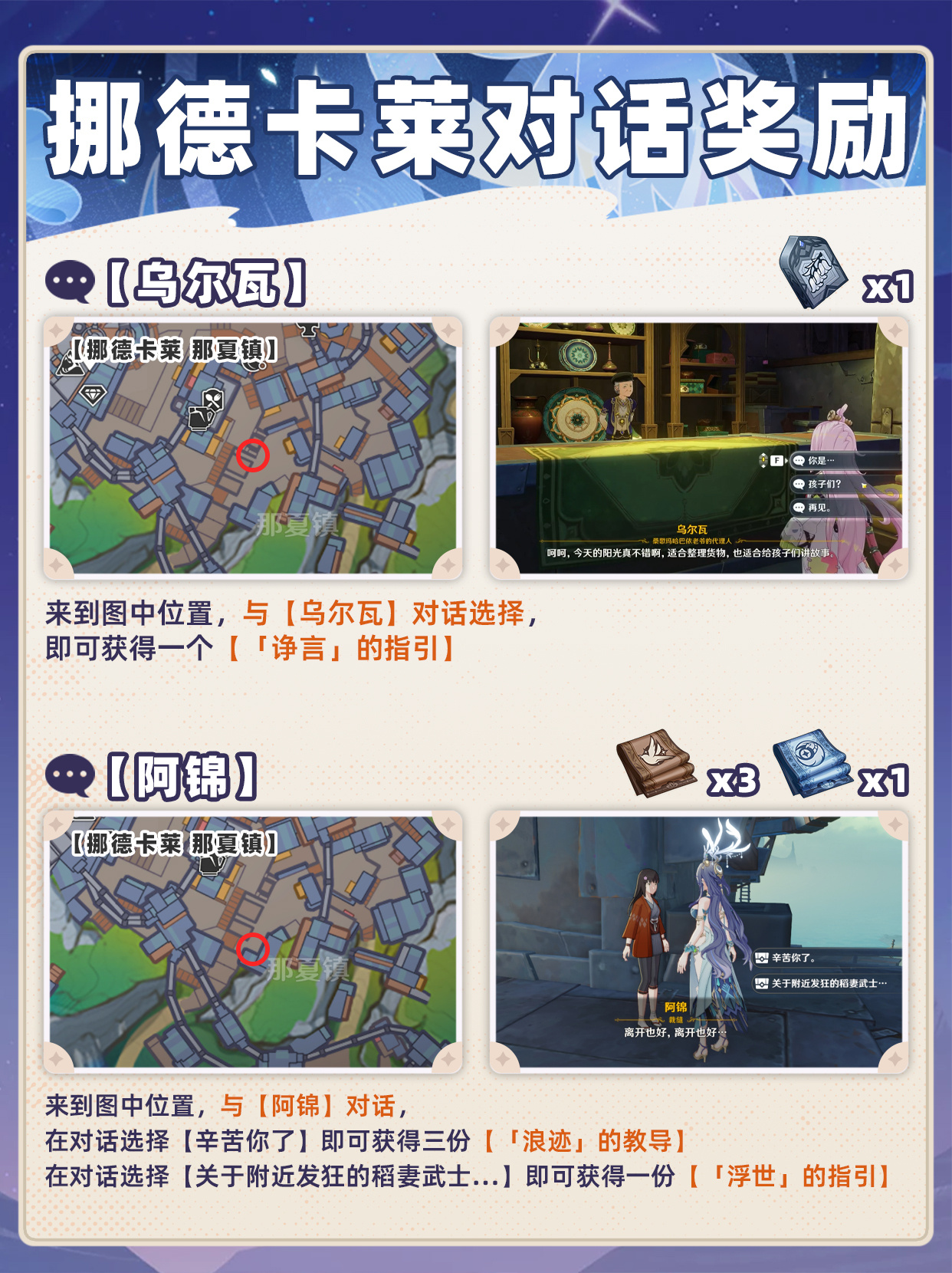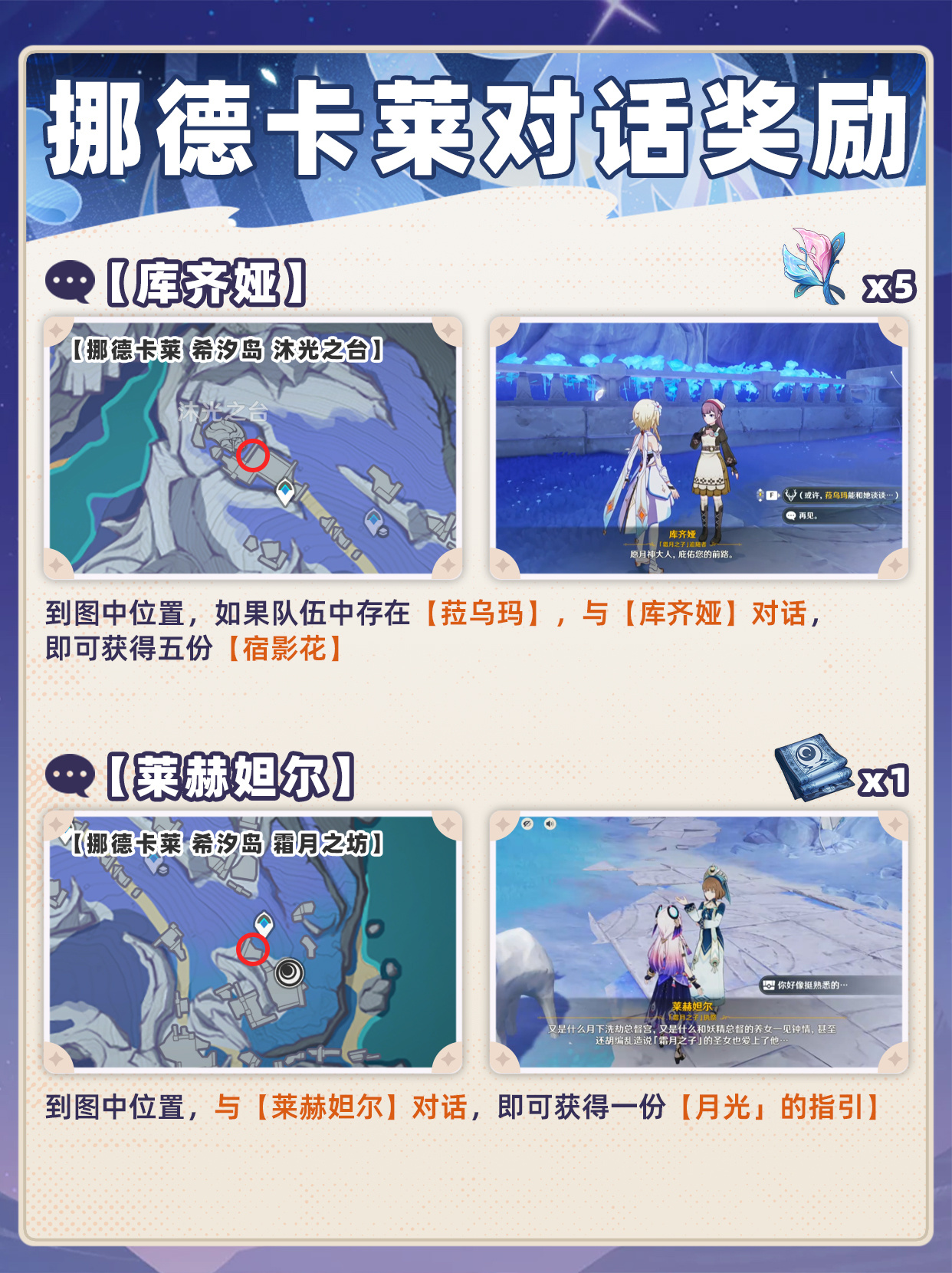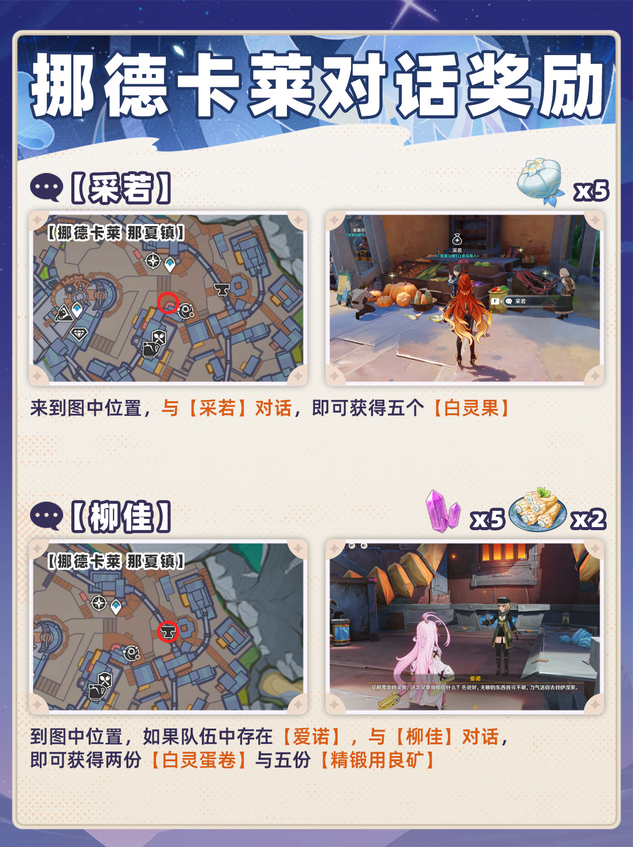 原神中和npc对话是有隐藏的奖励可以获取,那么在挪德卡莱新地图上都有哪些npc可以获得赠礼呢?下面小编为大家带来原神挪德卡莱npc赠礼大全,感兴趣的小伙伴一起了解一下吧。