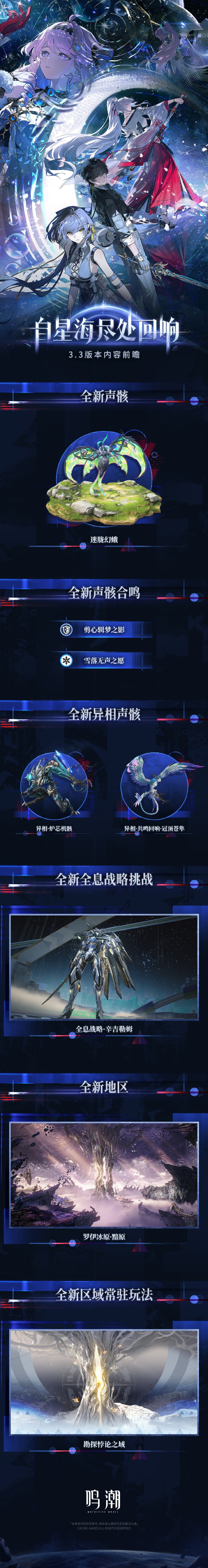 鸣潮在4月17日开启了3.3版本的直播,本次直播有兑换码以及全新福利,那么这次直播更新了哪些内容呢,下面就让我们来看看鸣潮3.3直播前瞻内容大全。