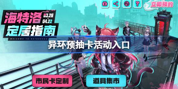 异环将在4月23日正式上线,而在3月26日官网开启了异环预抽卡活动,参与活动可以获得钢铁余音5星武器以及限定头像框哦!那么这个预抽卡活动在哪参加呢?入口在哪呢?下面快跟随多特小编一起来看看吧。