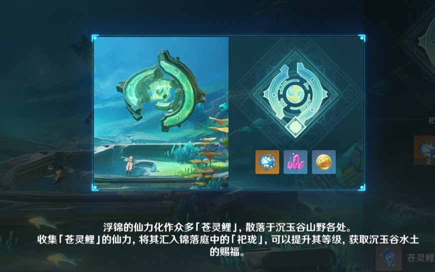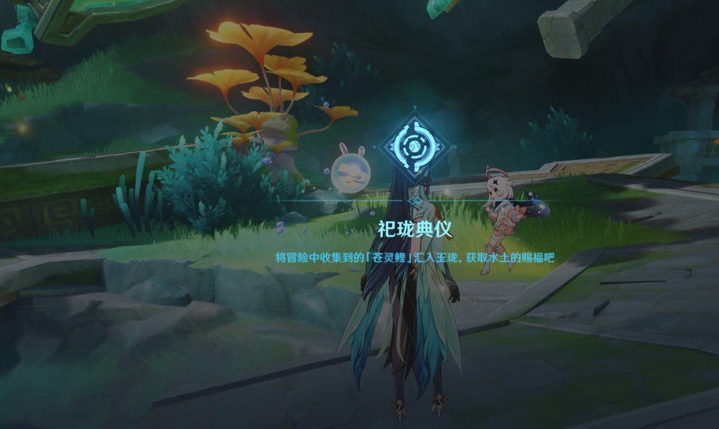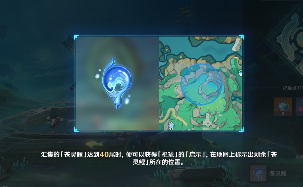 祀珑典仪类似于之前的神樱树、葱头、喷泉,找到苍灵鲤后来供奉即可。