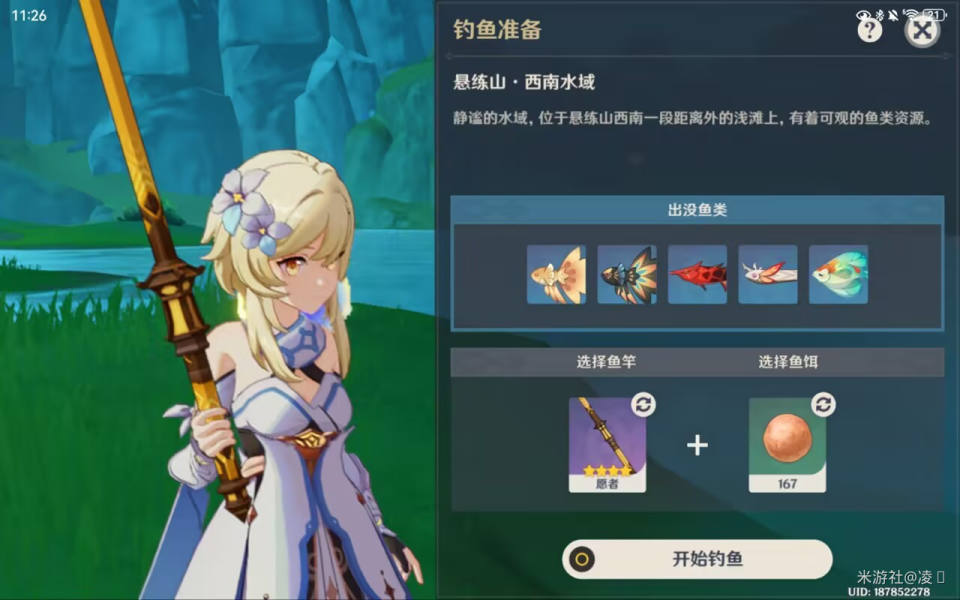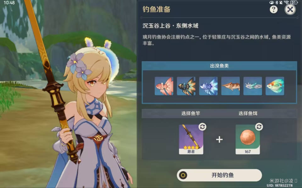 可获取6种鱼类,可使用4种鱼饵