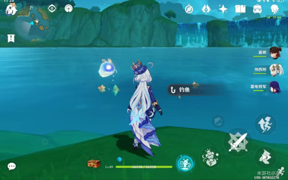 传送点出来,往北走,向下看可看到钓鱼点