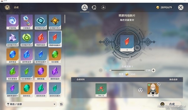 2)在合成台通过消耗一定的材料转化获得【转化材料如下图所示】