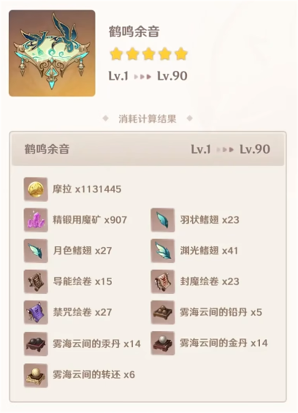 以上就是原神鹤鸣余音突破材料一览的全部内容了,希望对各位玩家有所帮助,更多精彩游戏攻略和相关活动资讯请关注多特游戏。
