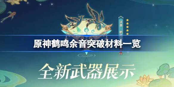 鹤鸣余音是原神4.4版本即将上线的五星法器,属于角色闲云的专武,那么鹤鸣余音突破材料有哪些呢?本期小编为大家带来原神鹤鸣余音突破材料一览,一起来看看吧!